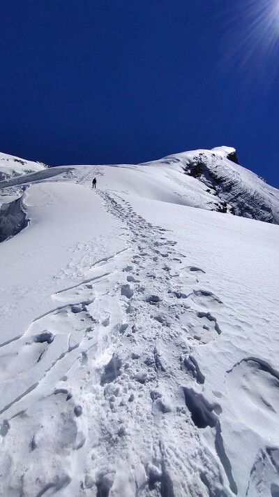 Continue on the same way you took yesterday. The journey from ABC to Camp 1.
