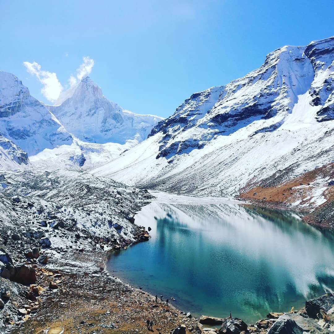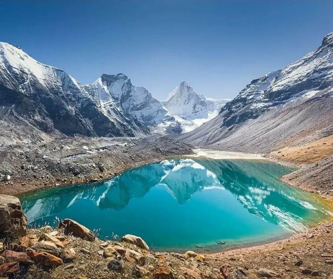 One of the best ways to relax and have fun is to go trekking in the Garhwal Himalayas. One of the most beautiful places to hike around here is Kedartal, a glacier lake that is emerald blue and situated at an elevation of roughly 15580 feet.