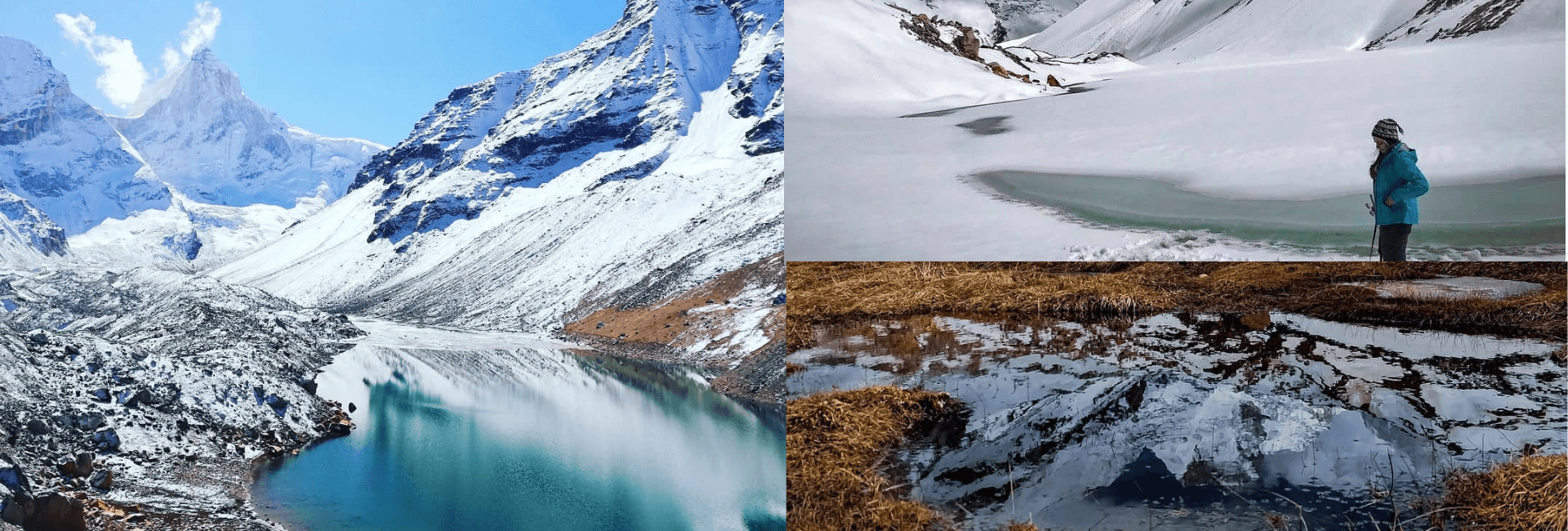 A trek up three hills formed completely of deposited boulders, with the odd gravel road running between them, is required to reach the beautiful Kedar Tal. Rock towers that are scattered around the area serve as trail markers, or "cairns." After ascending the two ridges, you get a glimpse of the last peak and wonder what vistas are beyond it. Kedar Tal Lake is seen below after climbing the third peak as a frozen emerald. Your problems seem trivial in comparison to the stunning vistas of Thalaysagar and other peaks.