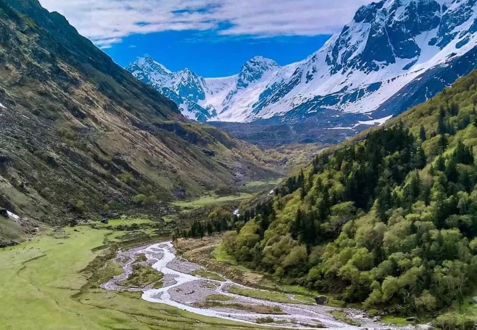 Har-ki-Dun valley is a cradle-shaped hanging valley in Garhwal Himalayas. The valley is about 3566m (11700ft) above mean sea level. It is said that the path through Har-Ki-Dun valley to the Swargarohini mountain, was the path taken by Pandavas on their way to heaven. The trail of the trek breaks through meadows, glacier basins, pine forests, moraine ridges, and ancient villages. The starting point for this trek is Sankri, a popular town in the district of Uttarkashi.
